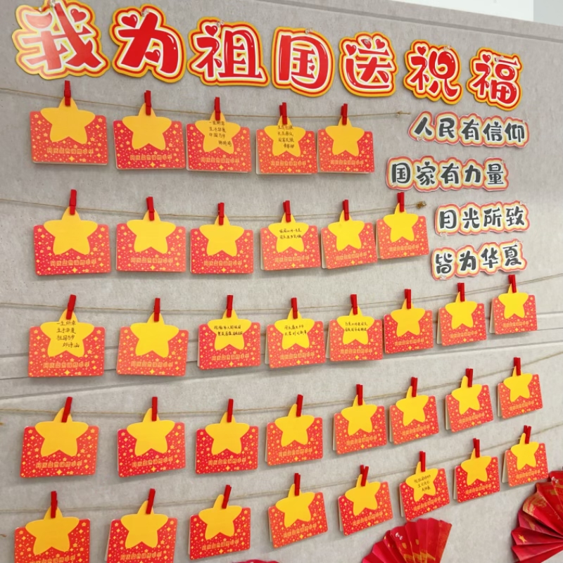 我为祖国送祝福语小学生手写空白心愿卡片红色爱国主题贺卡幼儿园环创班级布置氛围装饰国庆节五角星彩色卡纸