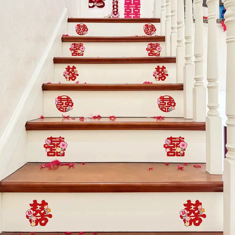 婚房布置装饰结婚专用全屋囍字门贴纸楼梯台阶婚礼大小喜字贴套装