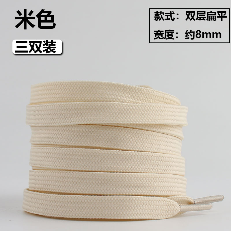8mm双层扁平鞋带男女休闲运动篮球鞋帆布鞋黑白灰米色潮流小白鞋