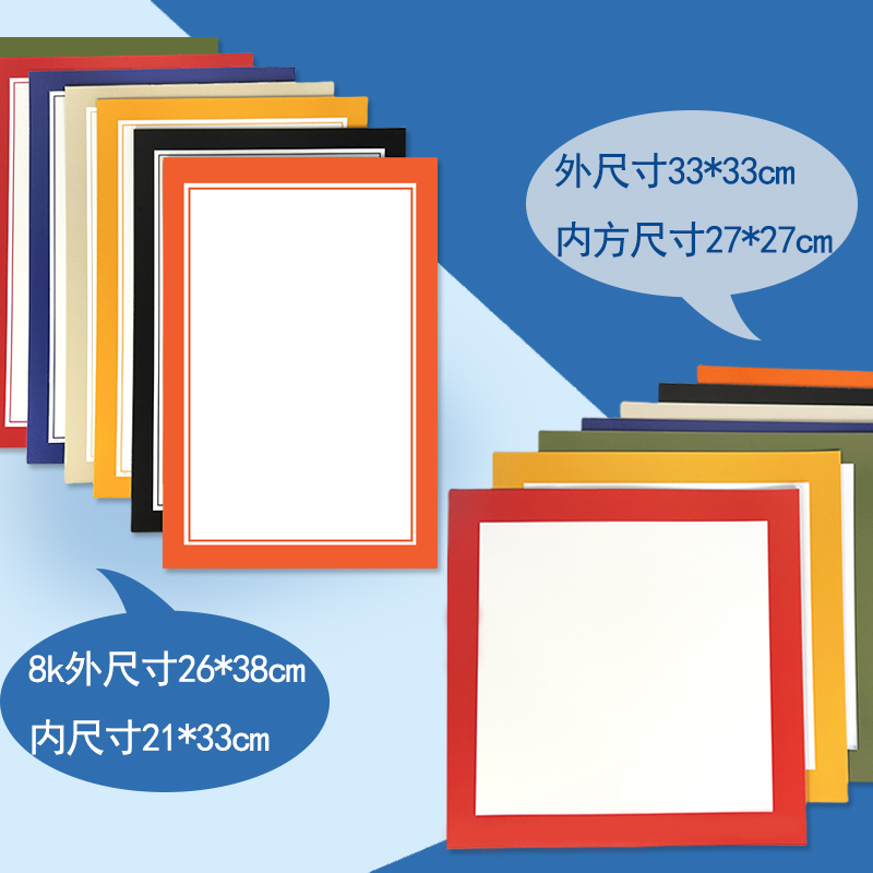 外方内圆形卡纸彩色8k边框卡纸圆形镜面纸正方形美术绘画硬卡纸厚