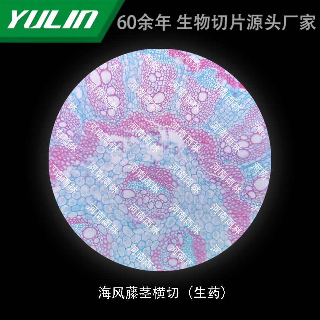 海风藤茎横切(生药)生物标本切片动植物细胞载玻片观察实验高校