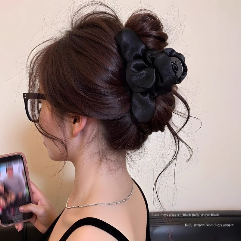 黑色缎面蝴蝶结大号抓夹羽毛云朵泡泡发夹超仙黑色抓夹高级感发饰