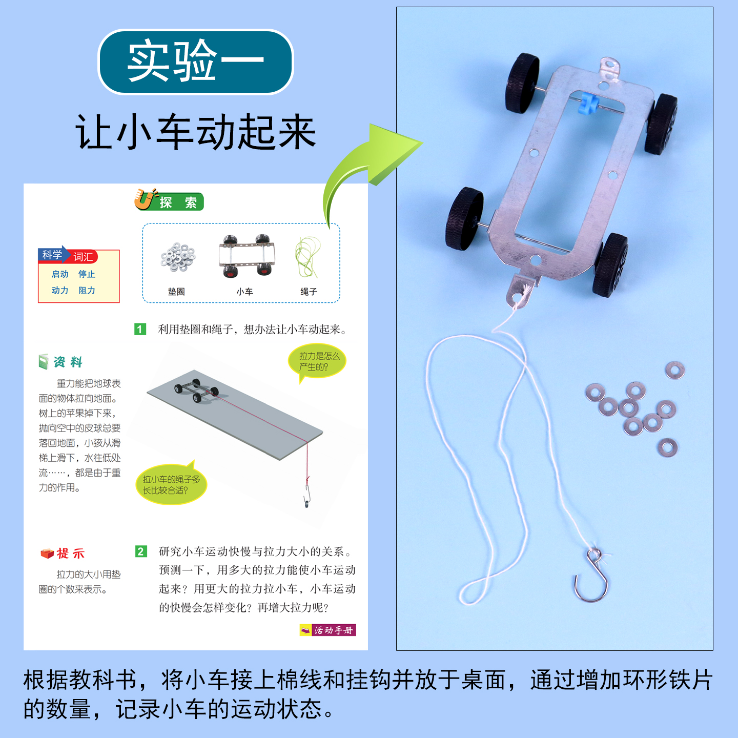 四年级上册小学生科学小实验套装教科版材料包制作让小车运动起来用气球驱动橡皮筋驱动小车金属小车运动和力