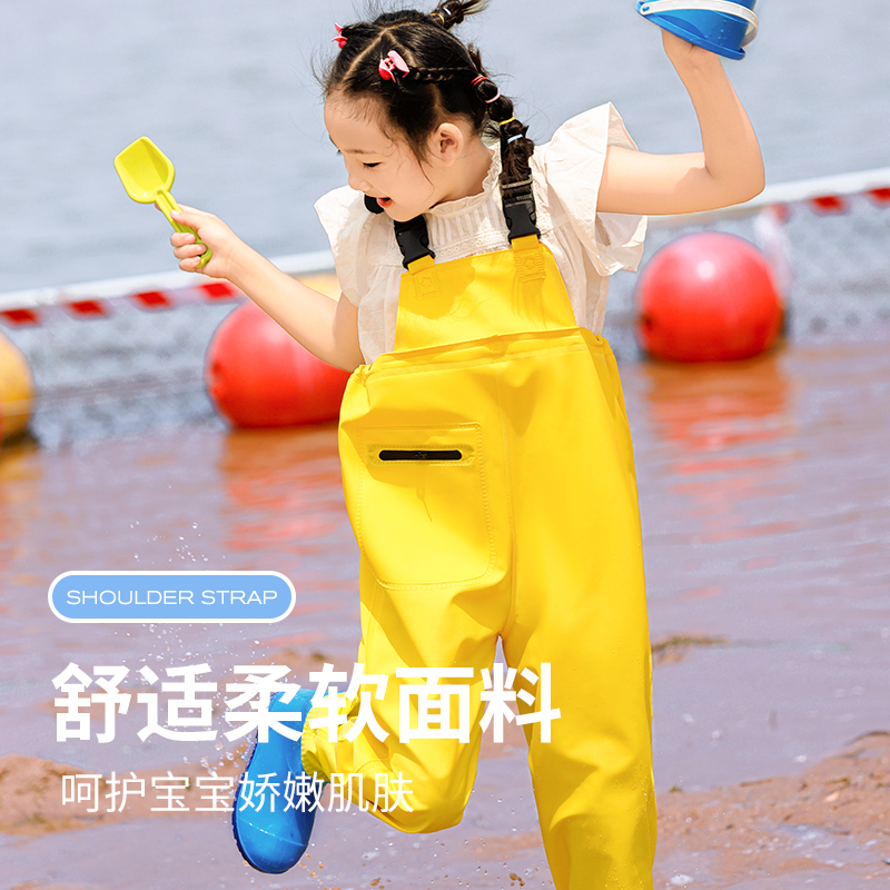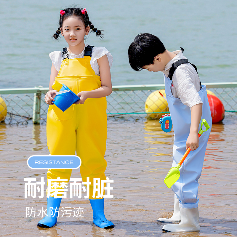 儿童玩水连体衣下水裤幼儿园防水赶海服装备工具抓鱼涉水雨鞋沙滩