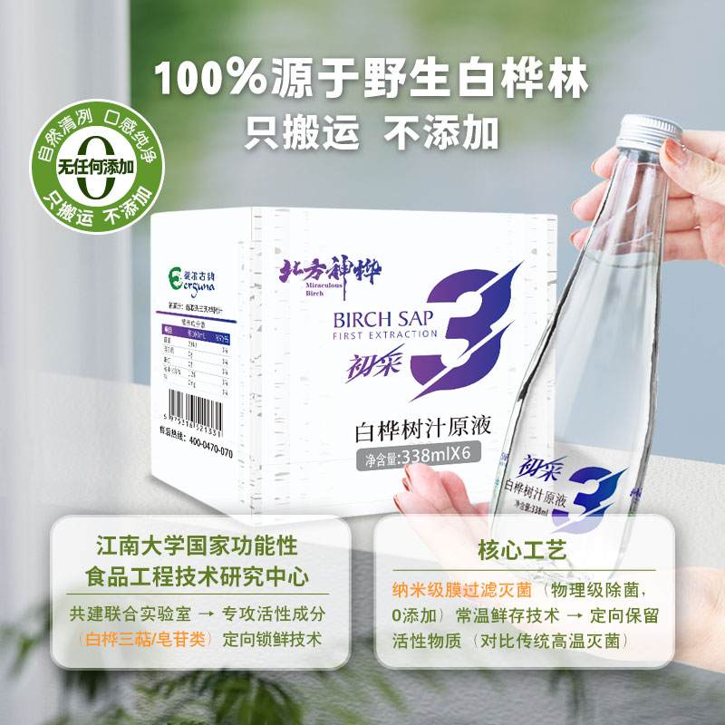 北方神桦天然白桦树汁100%原汁原液三天初采338ml*12瓶植物饮料