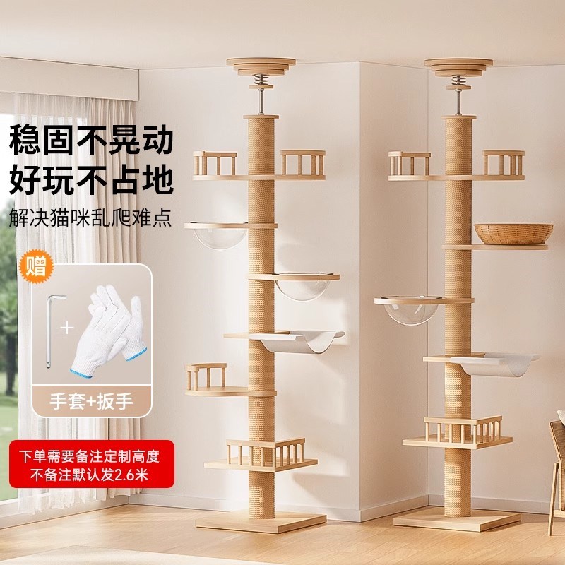 猫爬架猫窝猫树一l体通天柱猫跳台顶天立地实木猫架子不占地猫玩