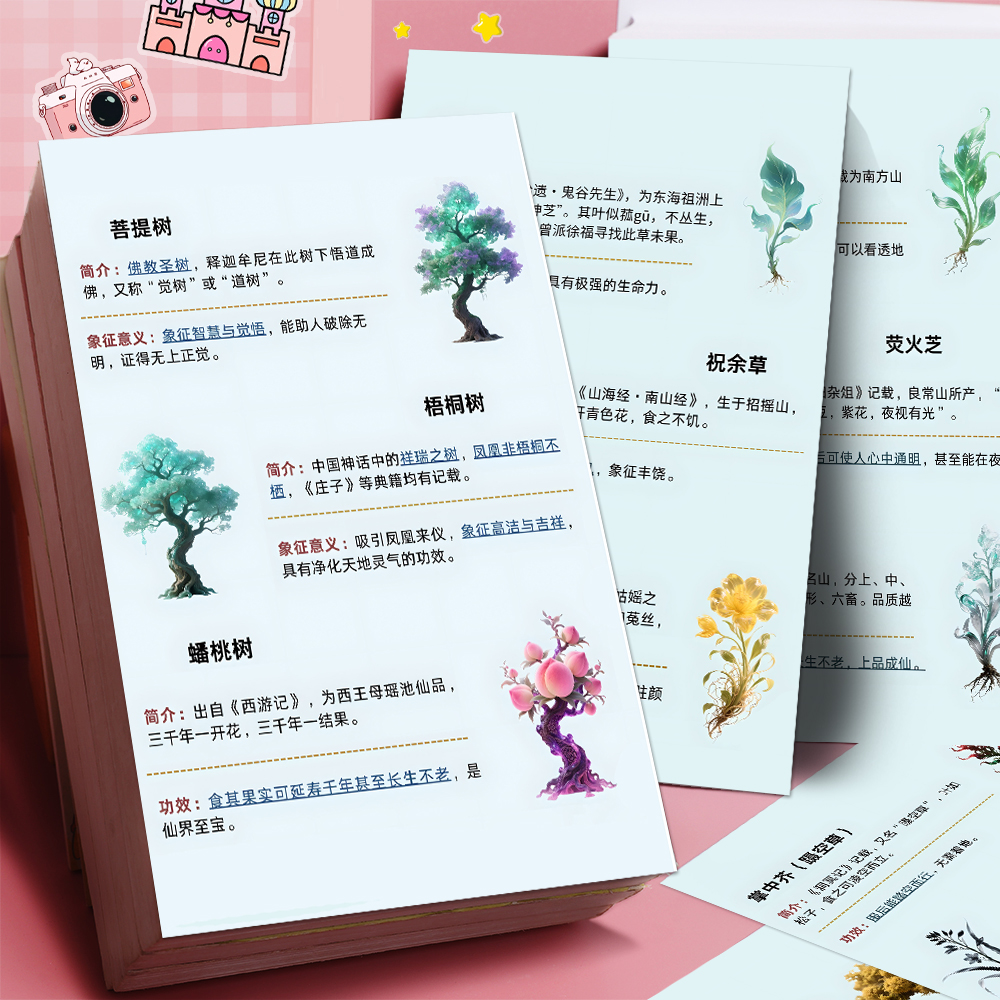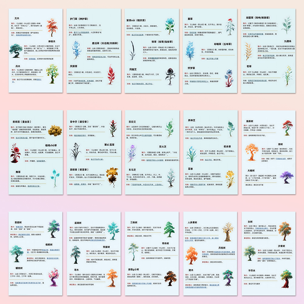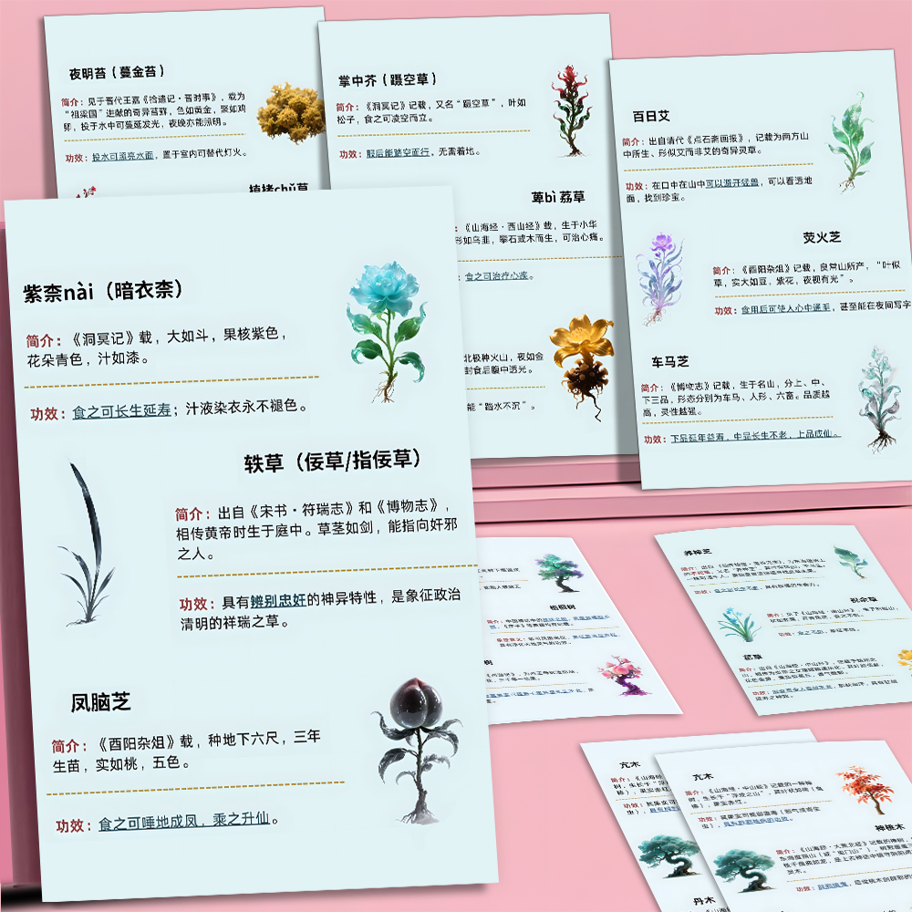 中国古籍中的24种仙草仙树简介科普传统文化小说写作素材大张贴纸