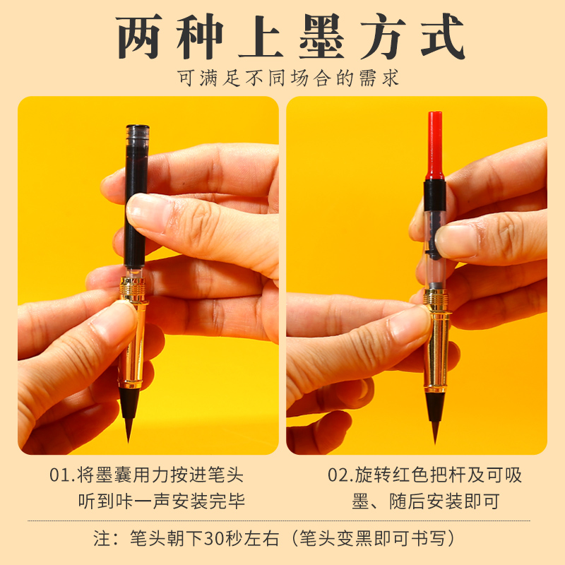 莫兰迪钢笔式毛笔自带墨水可加墨墨囊软头秀丽笔成年签字笔软笔初学者书法练字专用小楷手抄本入门字帖套装