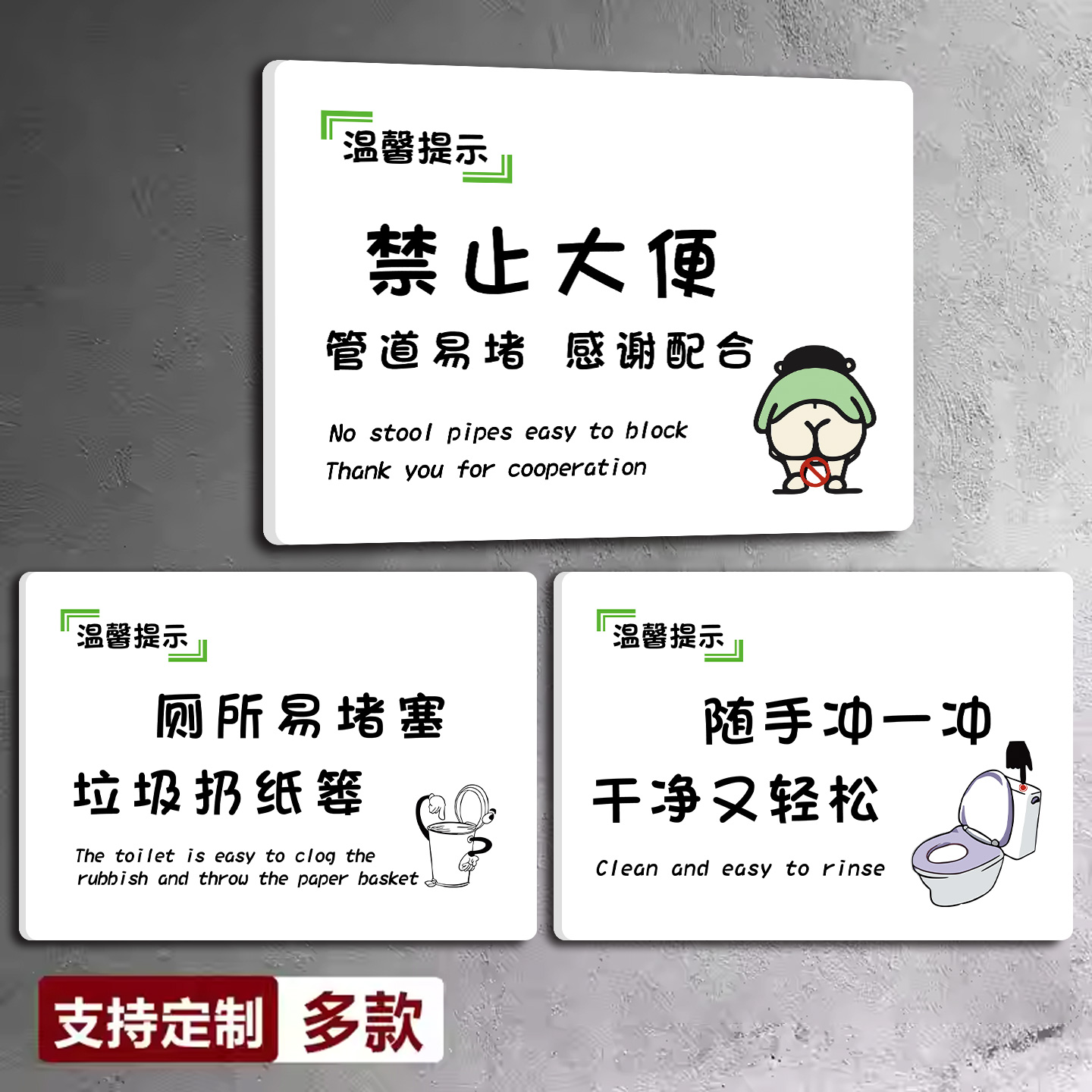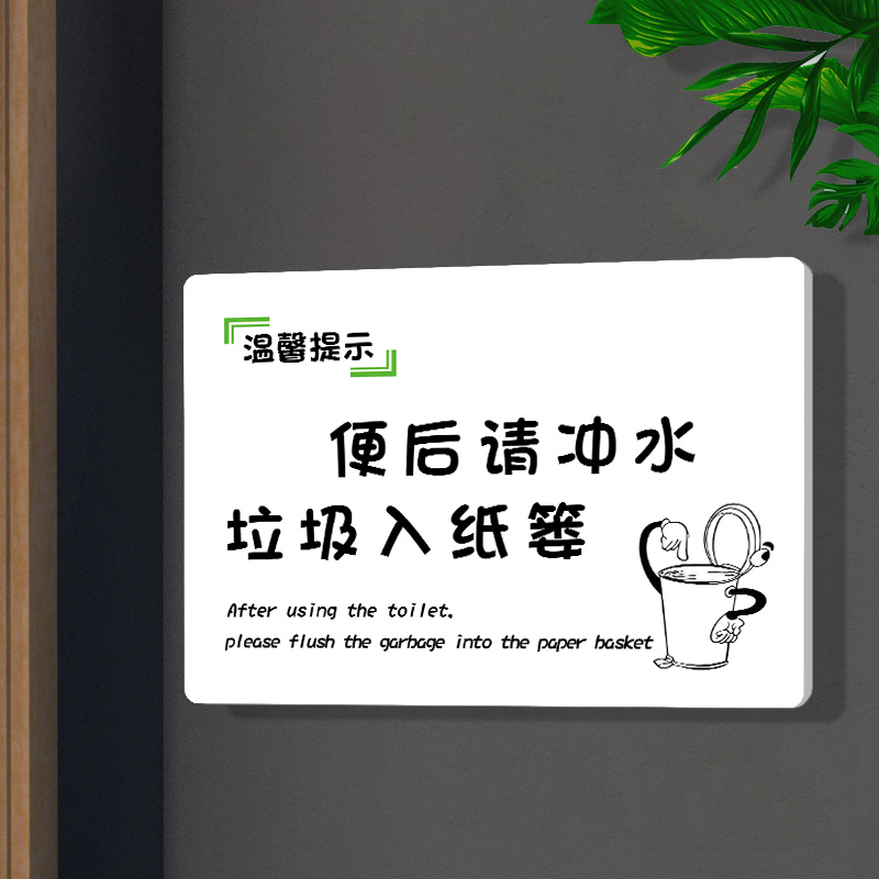 亚克力垃圾请入篓便后冲厕洗手间标识牌禁止大便提示牌只能小便不能大便标识牌洗手间卫生间文明标语指示牌子