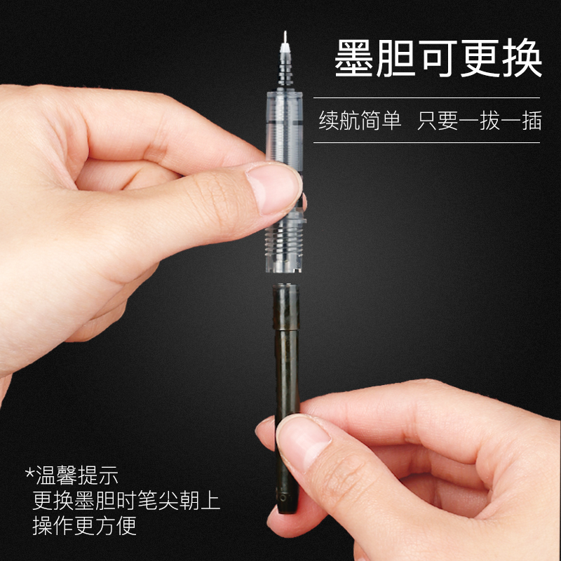 得力直液式走珠笔速干大容量直液笔0.5黑色中性笔学生用速干刷题笔水性笔直液笔圆珠笔商务办公简约风笔杆