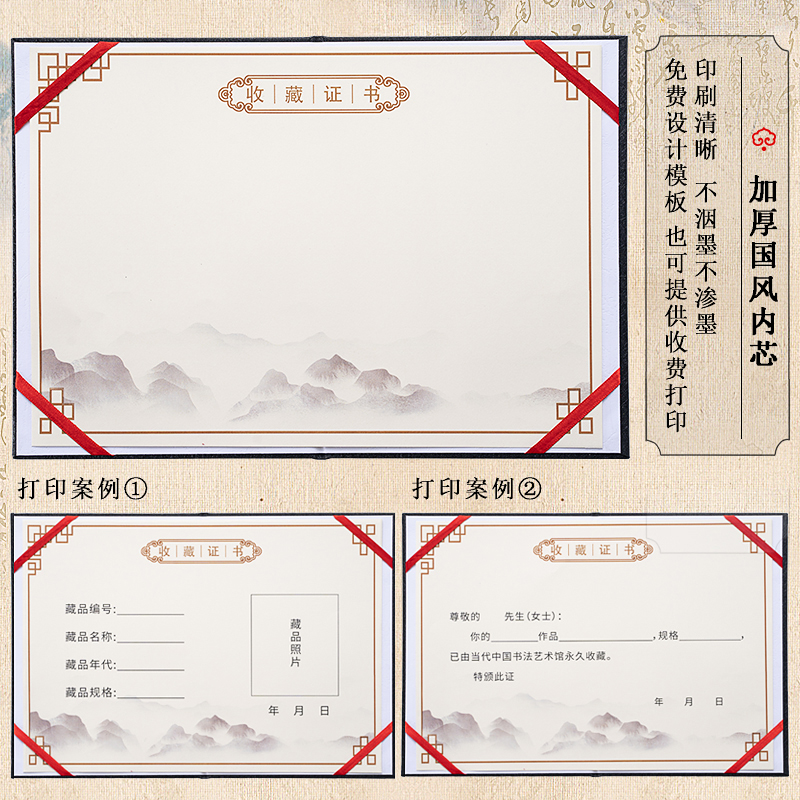 高档收藏证书外壳定制 拉丝中国风证件壳子 a6保护套6k封面A4内页12k内芯打印 古玩书画艺术作品证书订做LOGO