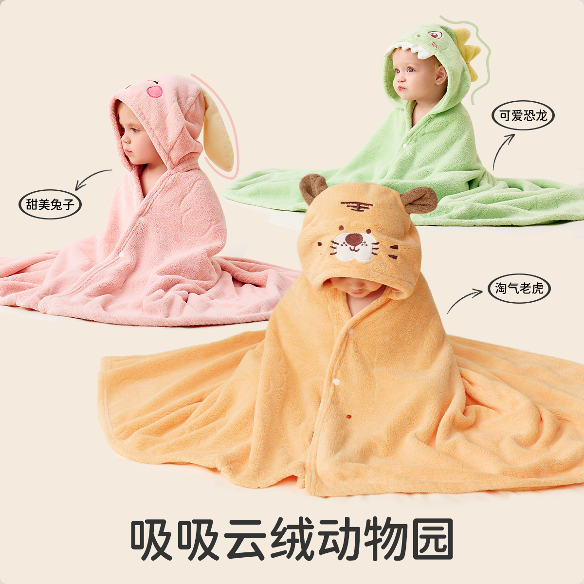 babygreat婴儿浴巾斗篷儿童浴袍带帽初生宝宝裹巾吸水速干四季