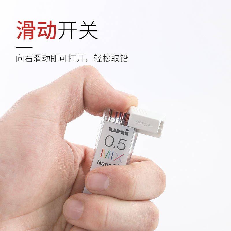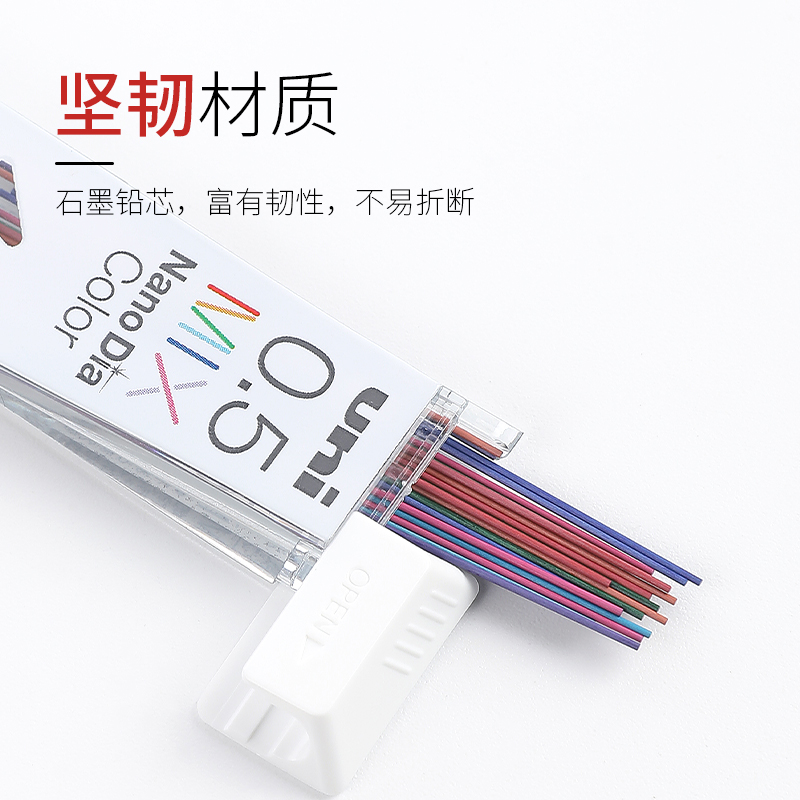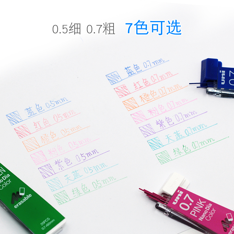 日本UNI三菱彩色铅芯纳米铅笔芯红色05彩铅202NDC自动笔彩芯学生自动铅笔笔芯可擦硬不断芯混色蓝色粉多色0.5