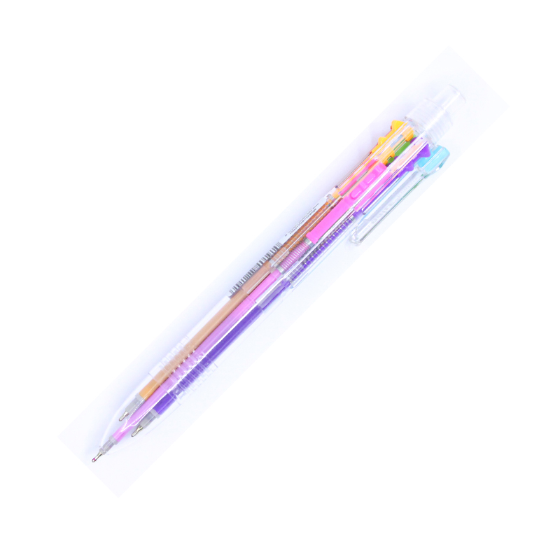 透明6色圆珠笔六色按动彩色笔创意卡通多色绘画油笔学生文具礼品