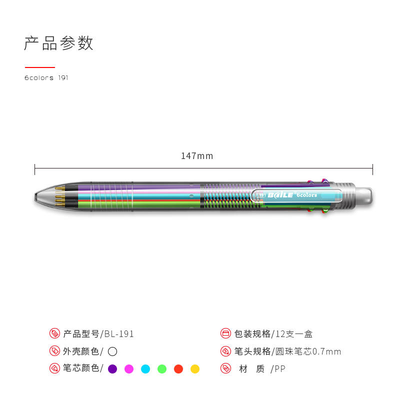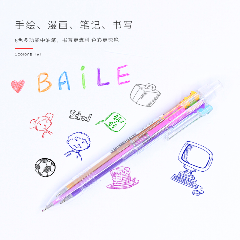 baile 百乐BL-191创意多功能六色按动彩色中油笔多色圆珠笔原子笔