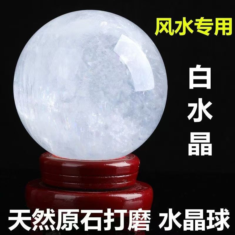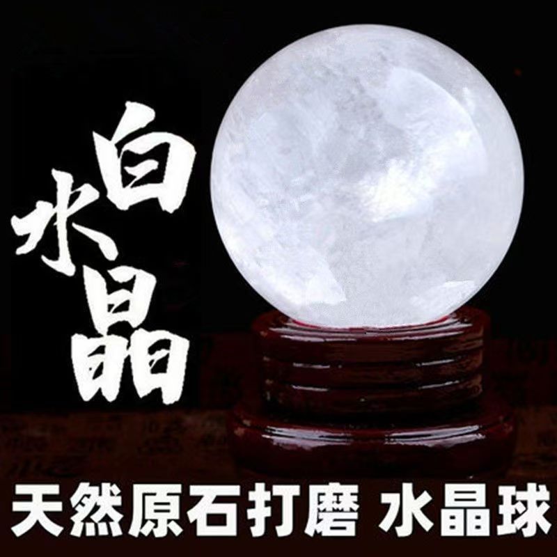 天然白水晶球摆件原石打磨水晶玄关卧室厨房桌面客厅礼品