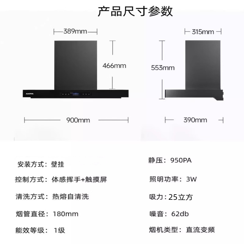 澳柯玛不锈钢抽油烟机大吸力自清洗厨房家用排烟大风量顶吸式强排