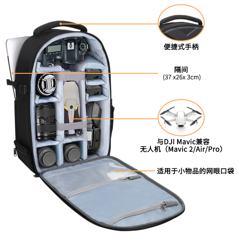 mosiso多功能电脑相机包专业摄影无人机双肩包大容量户外硬壳全开