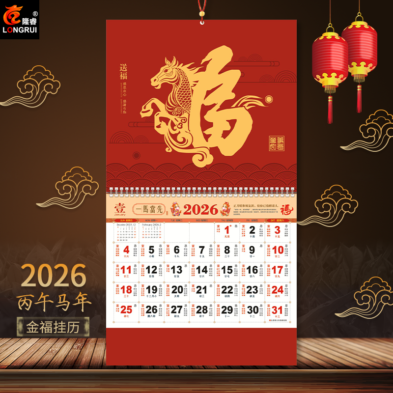 【高档】2026年挂历福牌吊历马年挂历手撕月历家用创意广告定制挂墙精品加厚单月黄历百福图LOGO订做大六开