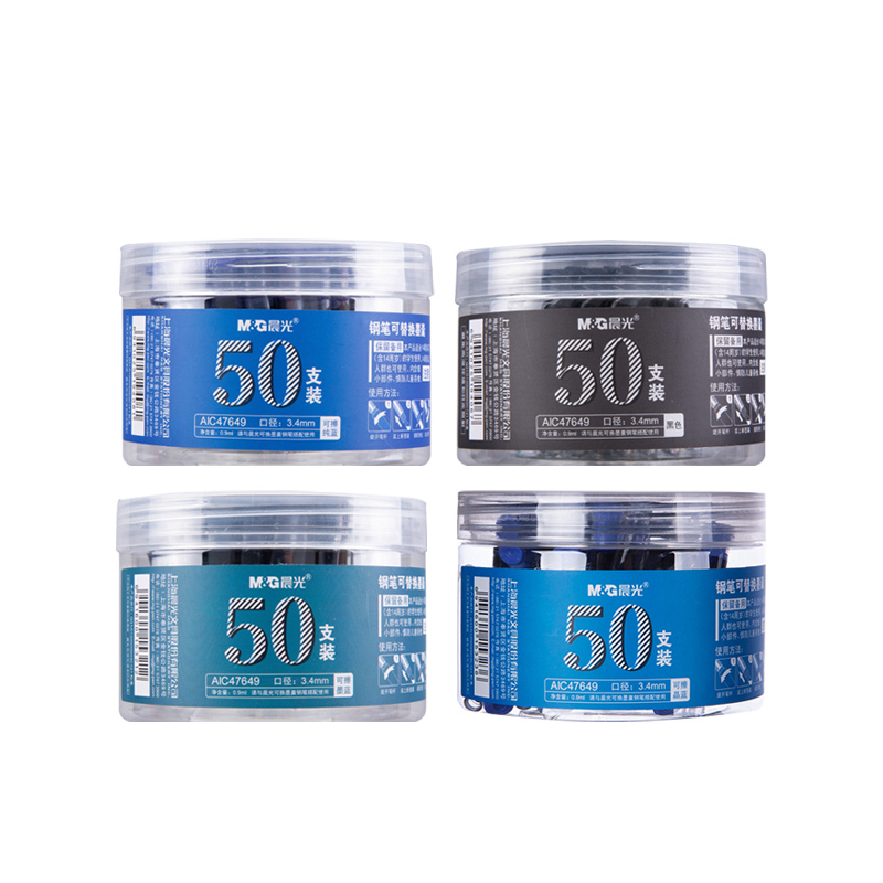 晨光文具可替换大容量可擦100学生专用钢笔墨囊按压式纯蓝黑色中小学生直液式通用3.4mm钢笔芯笔囊50支盒装