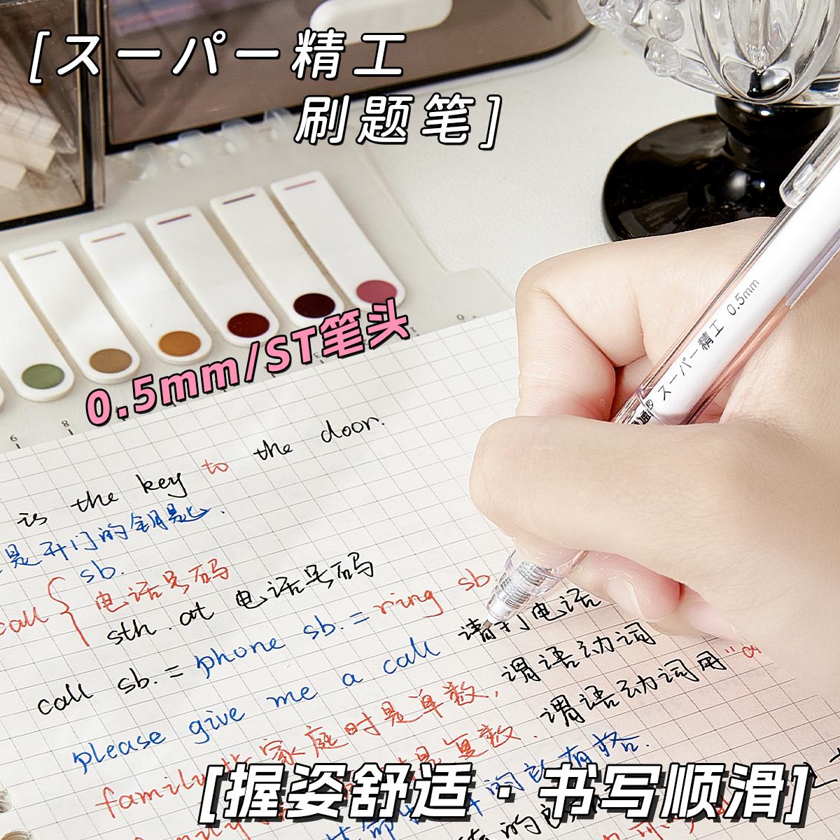 ST刷题笔高颜值按动中性笔圆珠笔黑色水笔小学生专用考试0.5速干碳素笔水性黑笔按压式做笔记签字笔非按斤卖