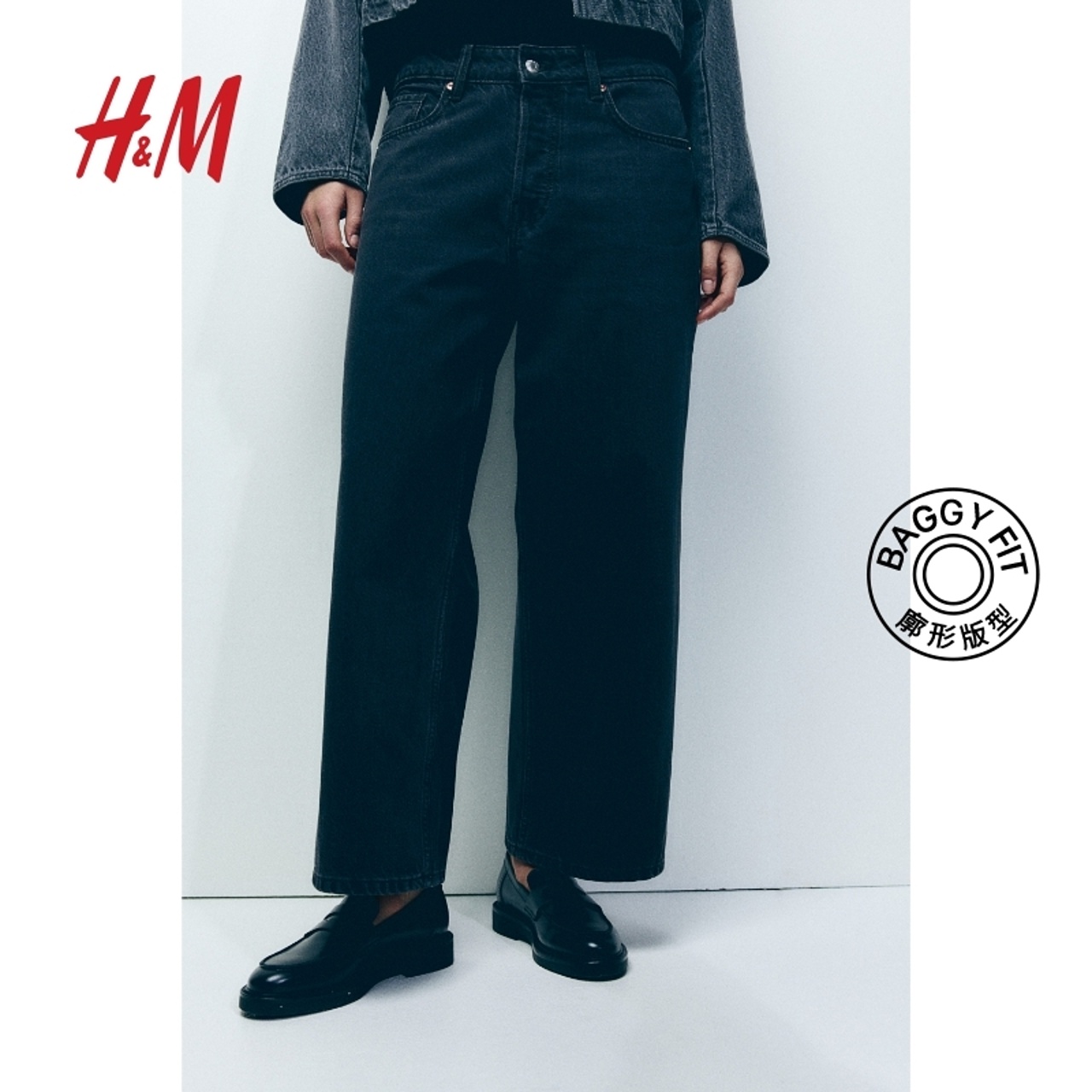 HM女装牛仔裤秋季柔软舒适宽松低腰及踝牛仔裤1199189