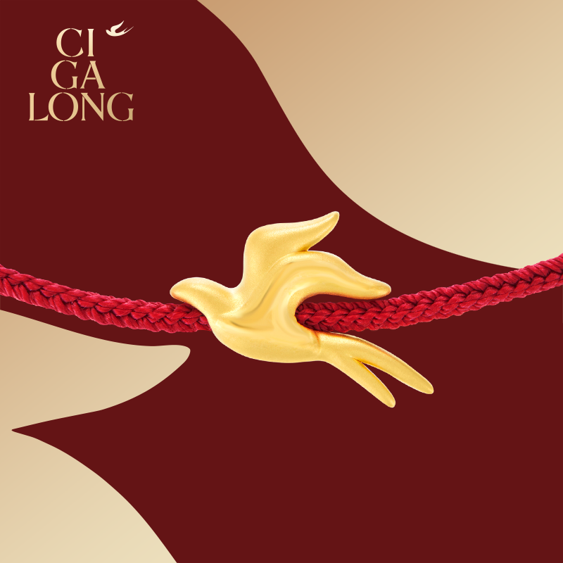 CIGALONG龙梓嘉足金红绳黄金福至燕归本命年编织手链新中式礼物
