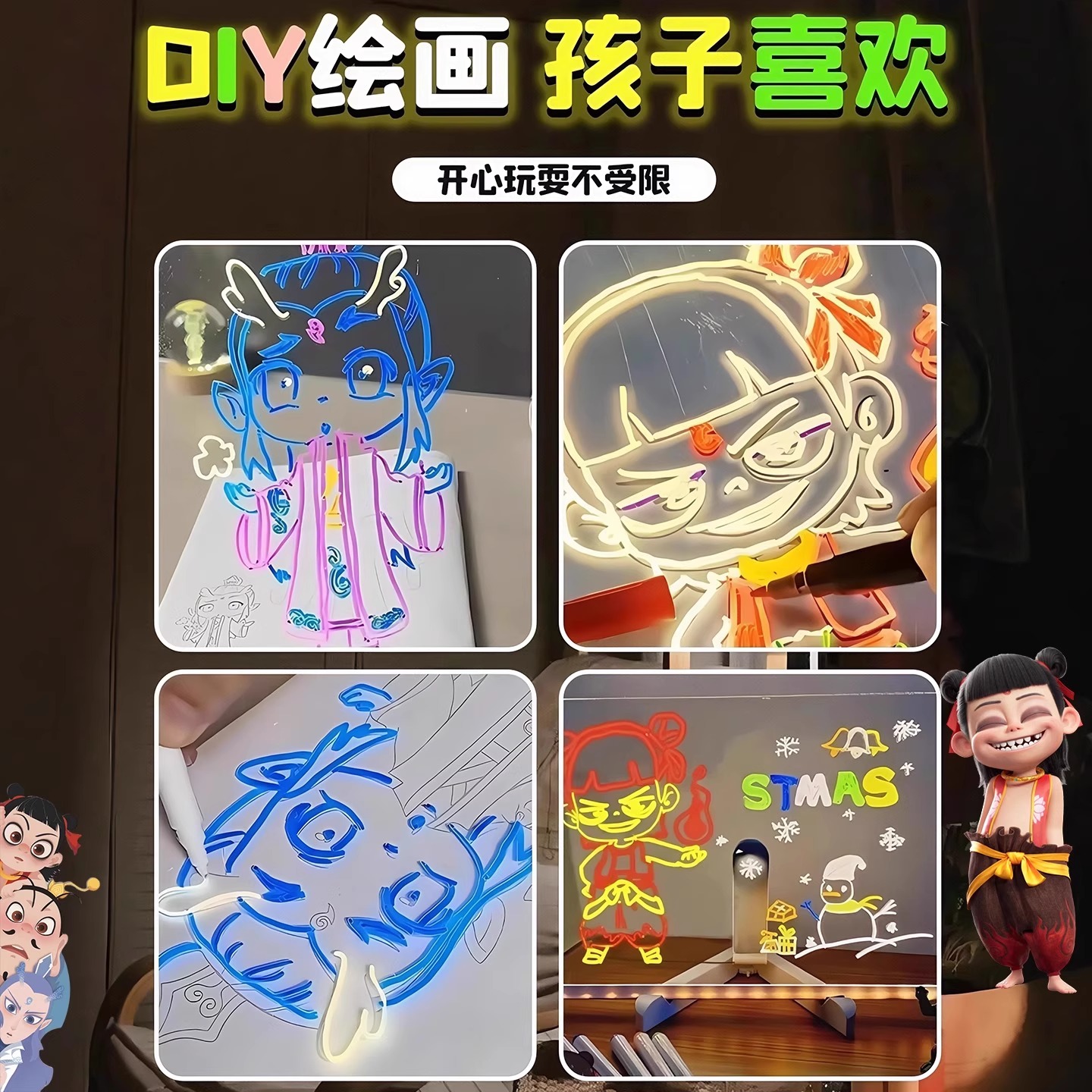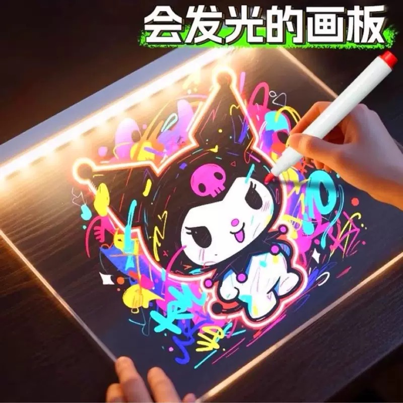 透明会发光的画板儿童涂鸦画画可擦LED荧光亚克力六一节礼物玩具