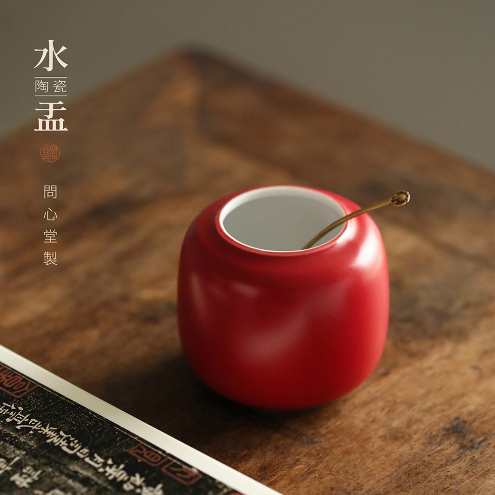 问心堂彩色陶瓷小水盂添水笔洗初学者书法小水缸毛笔笔搁文房四宝红色水盂墨汁墨海创作墨锭练字多功能小水丞