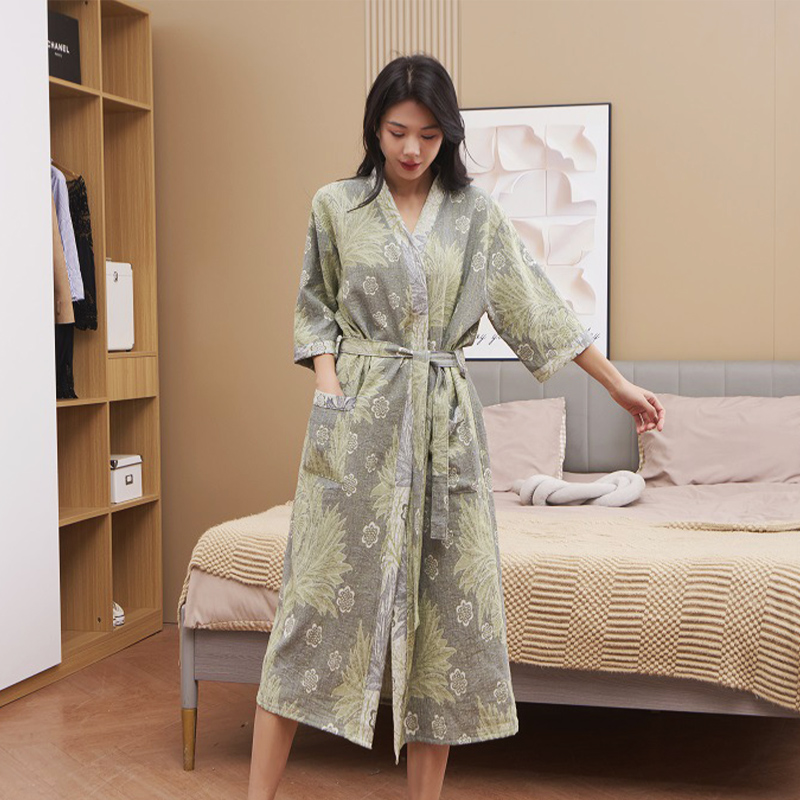 如奕中式国风浴袍纯棉纱布2025新款女吸水速干加长浴衣情侣款和服