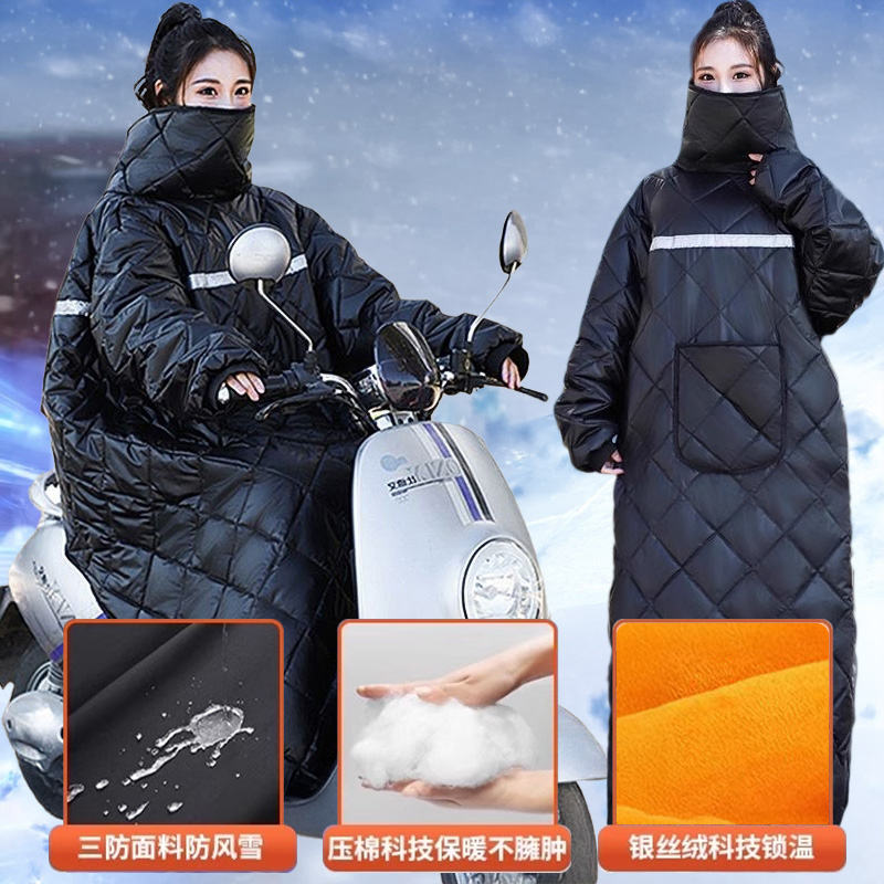 电动车挡风被冬季加绒加厚电瓶摩托骑车防寒服防水保暖冬款挡风衣