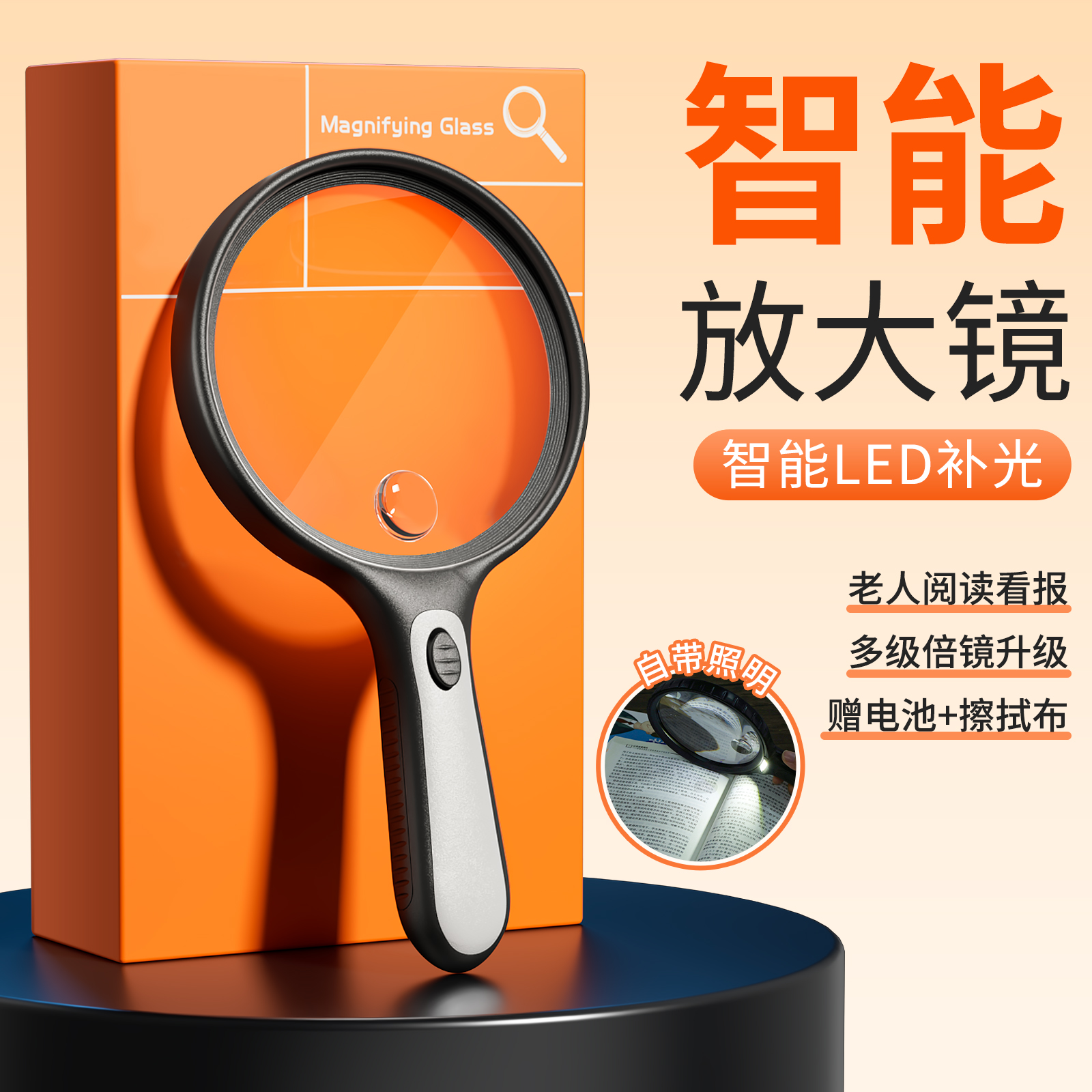 放大镜老人阅读高清正品100倍手持高倍扩大镜塑料柄看书用10倍放大镜老花镜鉴定专用带led灯便携式30倍
