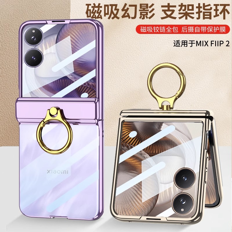 乐比亿 适用小米mixflip2手机壳新款mix flip2折叠屏指环保护套tt超薄的透明外壳膜一体xiaomi铰链全包防摔女