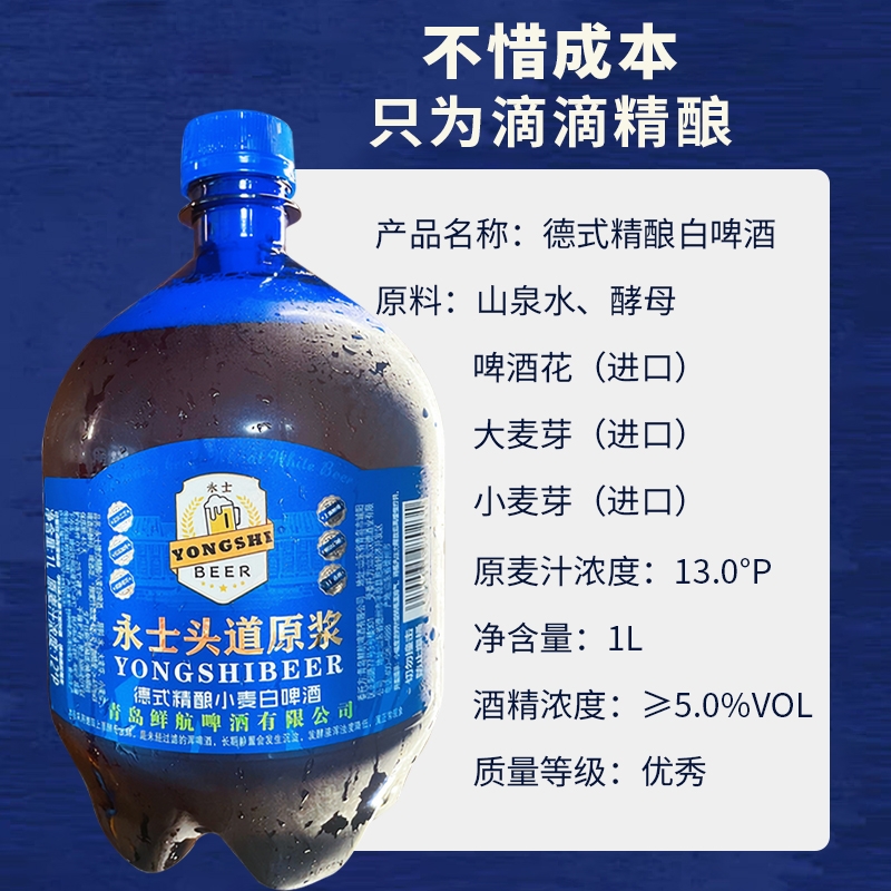 青岛永士头道原浆德式精酿小麦白啤酒13.0°P大桶1L装新鲜麦芽