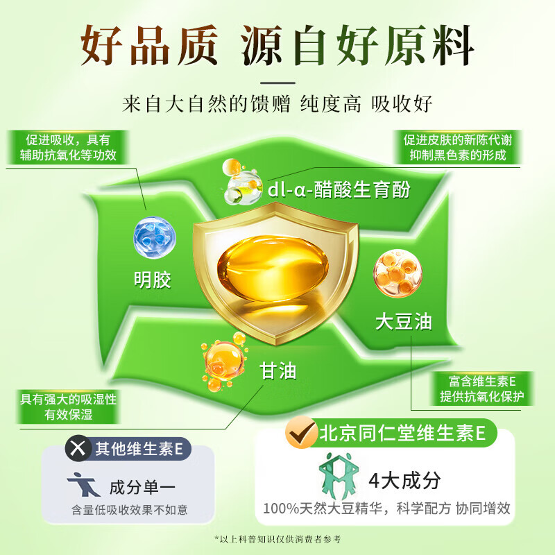 北京同仁堂天然维生素e软胶囊200粒正品官方旗舰店祛搭维CE黄褐斑