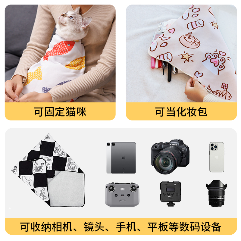 JJC 百贴布 猫咪固定包裹猫布圣诞节礼物剪指甲打针防抓防咬保护包神器束缚洗猫袋百折布化妆品收纳包