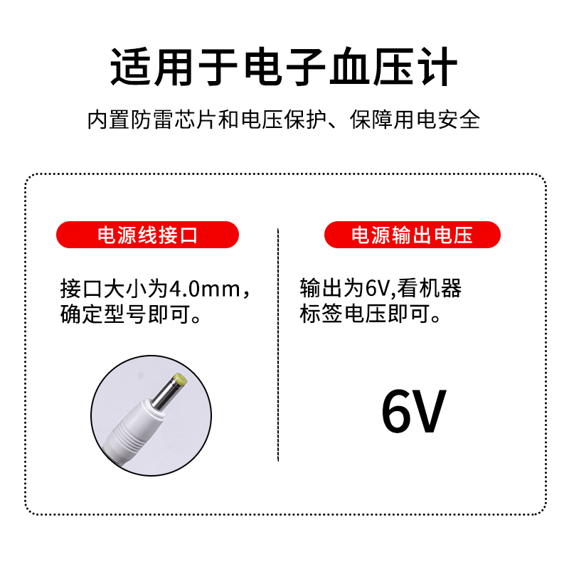 适用于omron欧姆龙电源适配器6V1A电子血压计九安血压仪DC6V电源线充电器