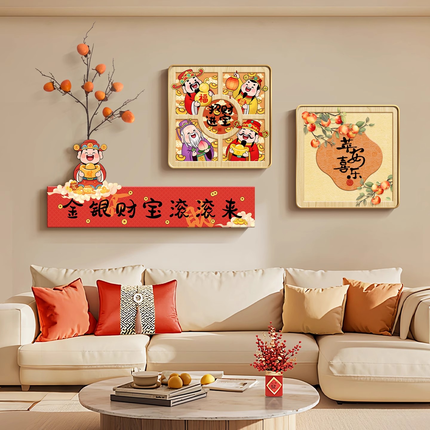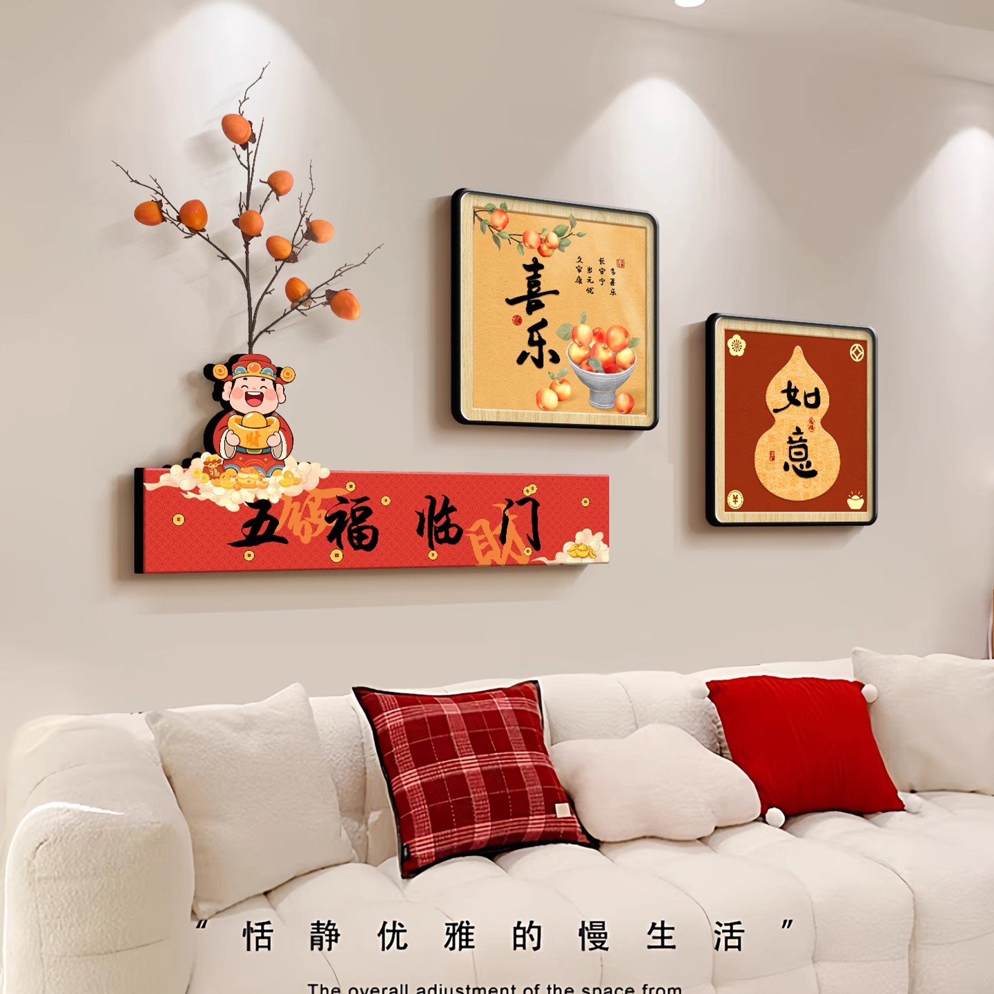五路财神爷客厅装饰画福禄寿喜财入户玄关挂画寓意好的组合壁画