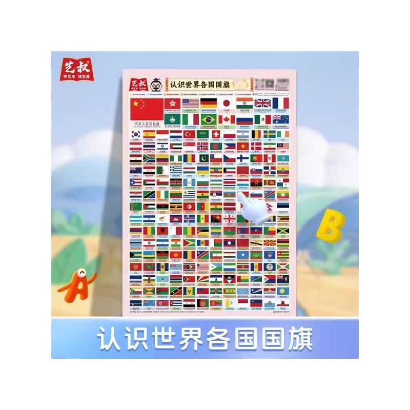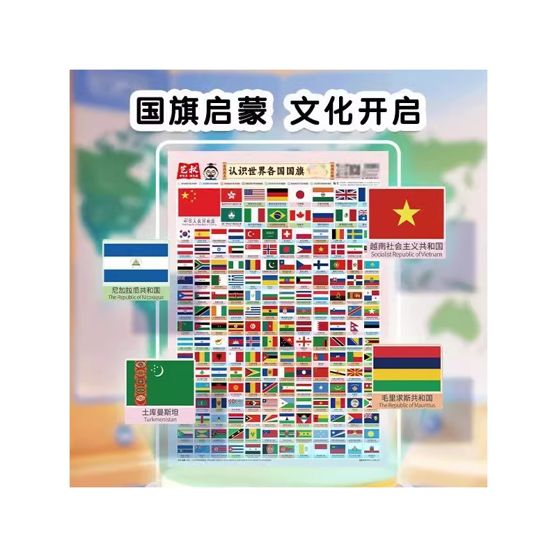 认识世界各国的国旗挂图 幼小衔接认知挂图幼儿早教学习 认识世界地标建筑和中国人文建筑 儿童早教婴幼儿启蒙拼音识字卡墙贴