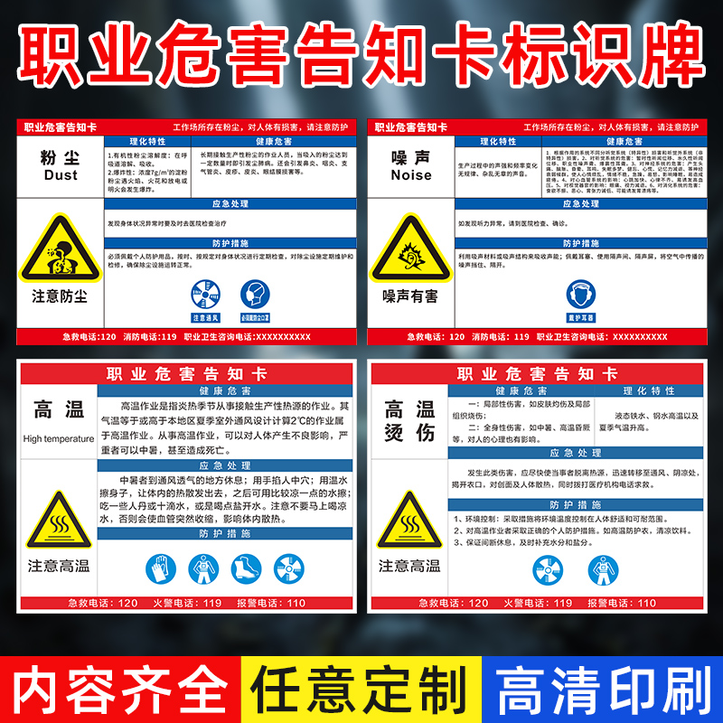 注意高温小心烫伤安全警示牌高温粉尘噪声告知卡工厂车间仓库安全标识牌戴口罩噪声有害注意防尘提示牌告示牌