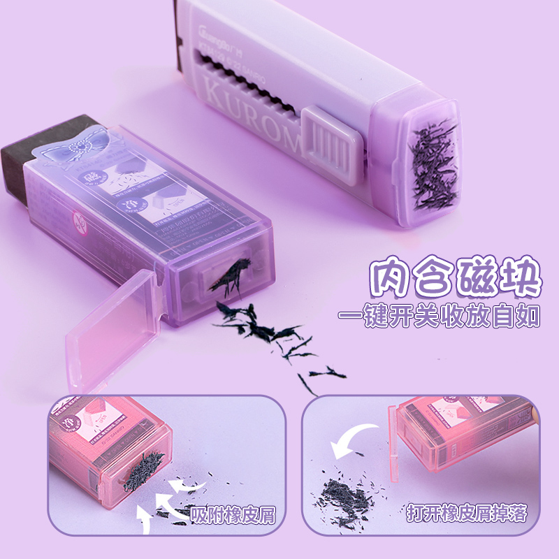 库洛米磁吸推拉橡皮小学生专用磁力橡皮擦少女可爱擦不留痕无碎屑创意推动伸缩橡皮美术绘画铅笔儿童幼儿园用