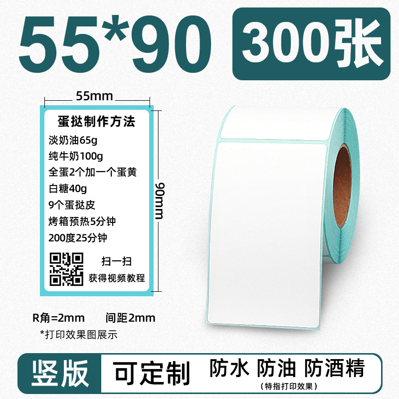 昕维三防热敏标签纸55*70 60 80 90 100mm竖版条码打印机空白标签纸不干胶服装吊牌合格证说明书防水价格贴纸