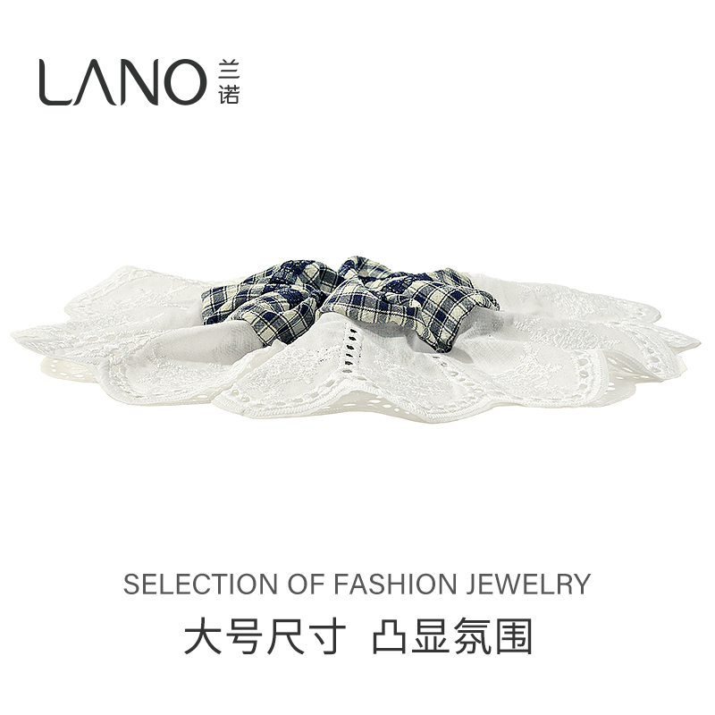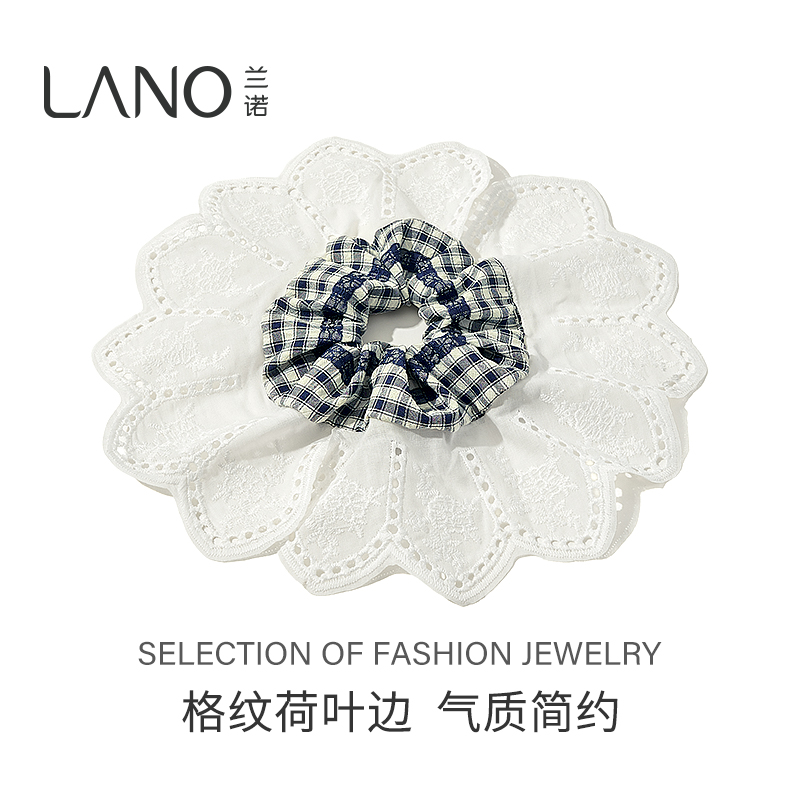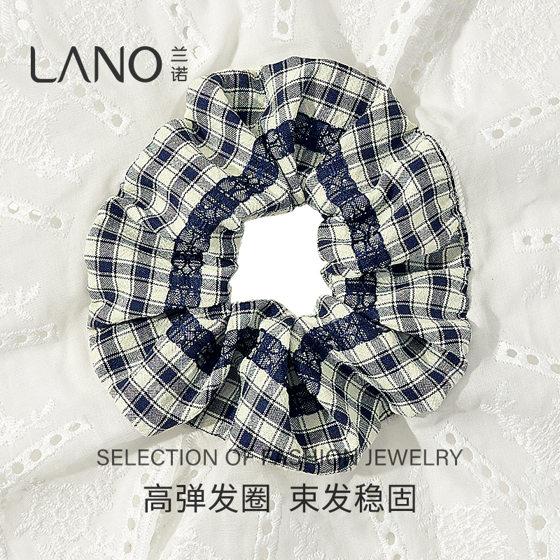 兰诺花边蓝色格纹大肠发圈女超大2025新款高级感扎头发丸子头发饰