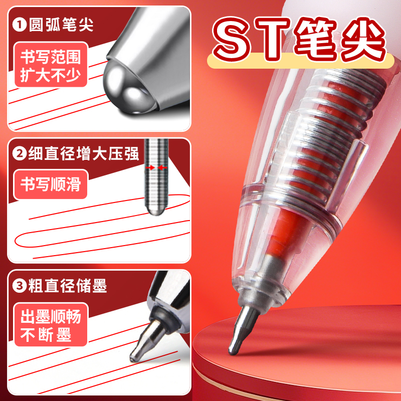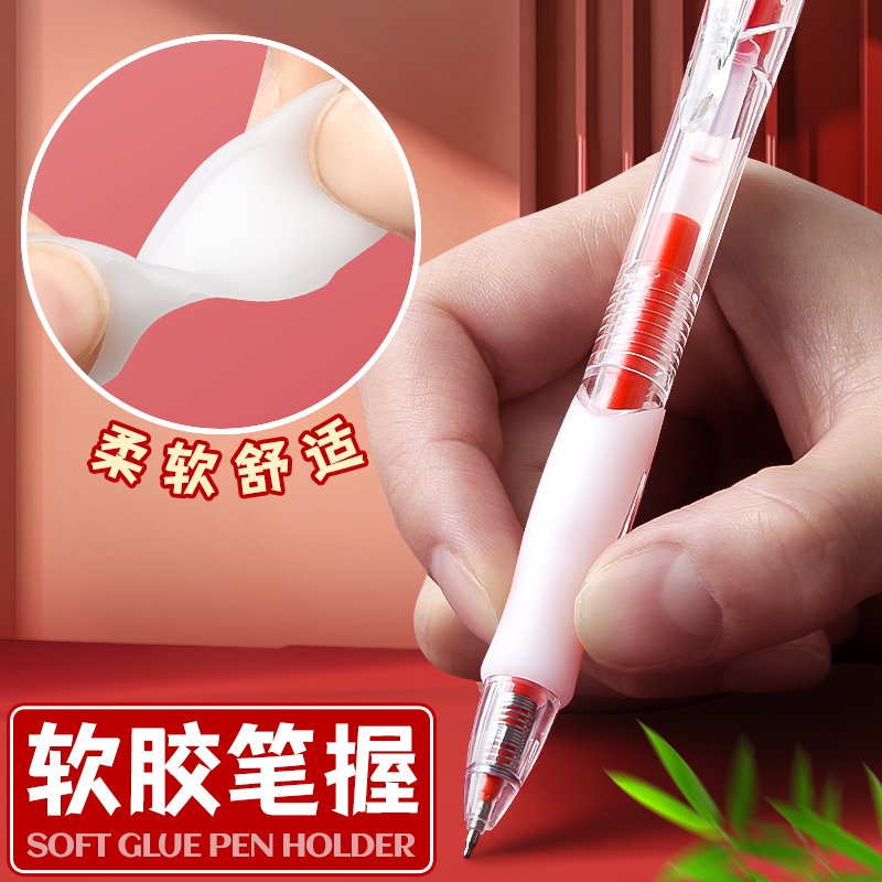 晨光透明st按动红色中性笔GP1008学生用纠错标记红笔0.5mm实用派老师用批改作业速干ST头红色笔水性笔圆珠笔