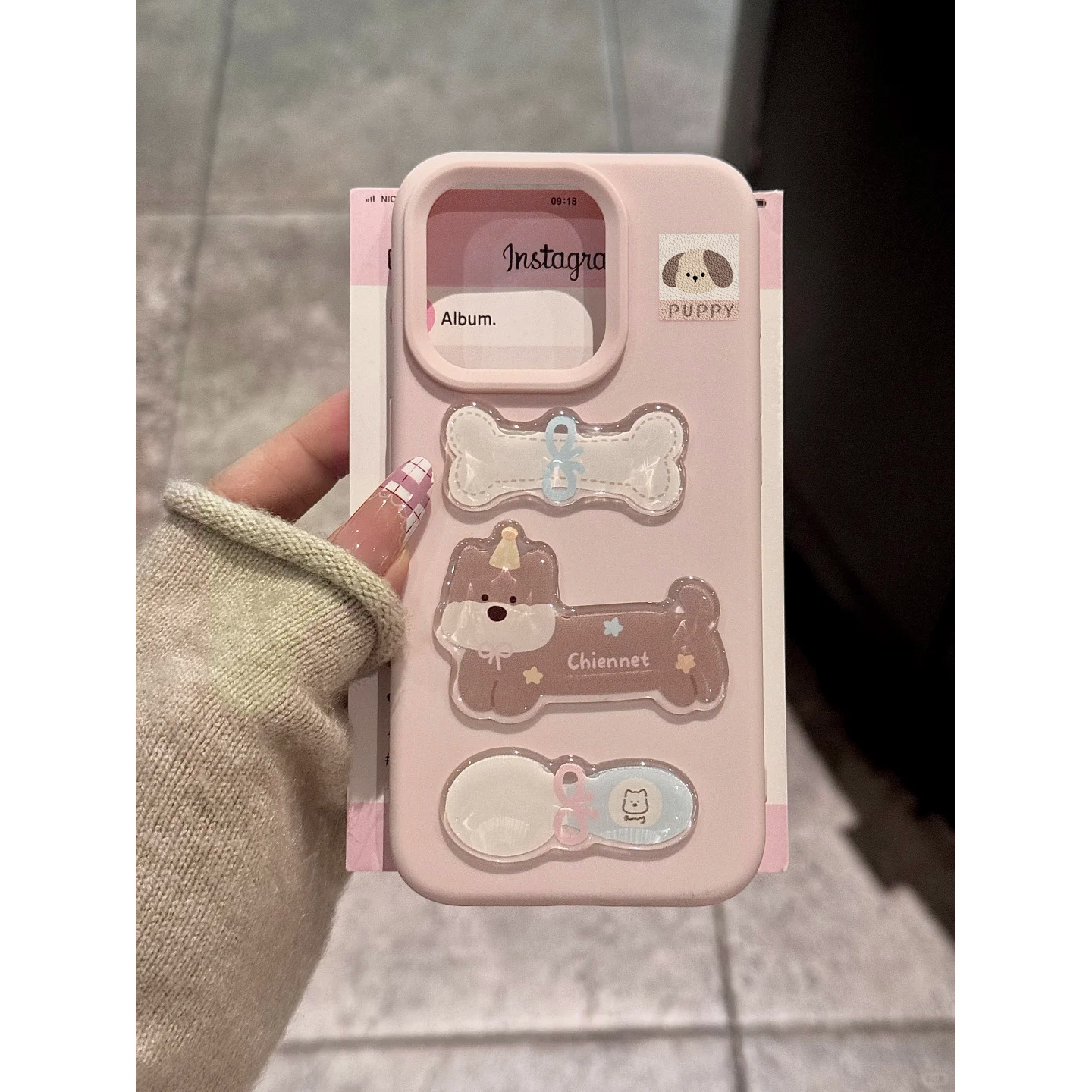 日韩卡通可爱小狗适用苹果15promax手机壳iPhone16pro新款荔枝纹13趣味小众12个性皮质11防摔14pro保护套女款