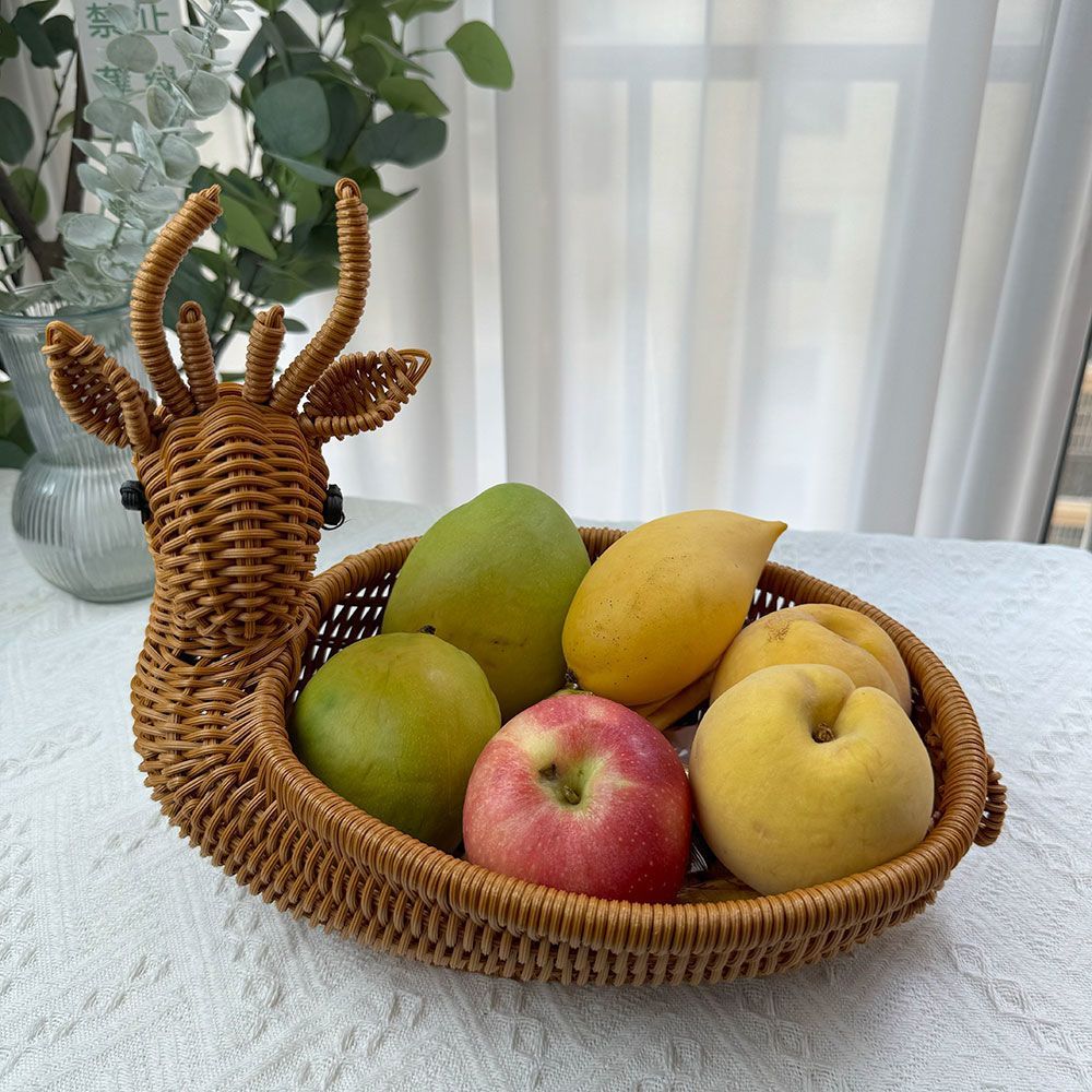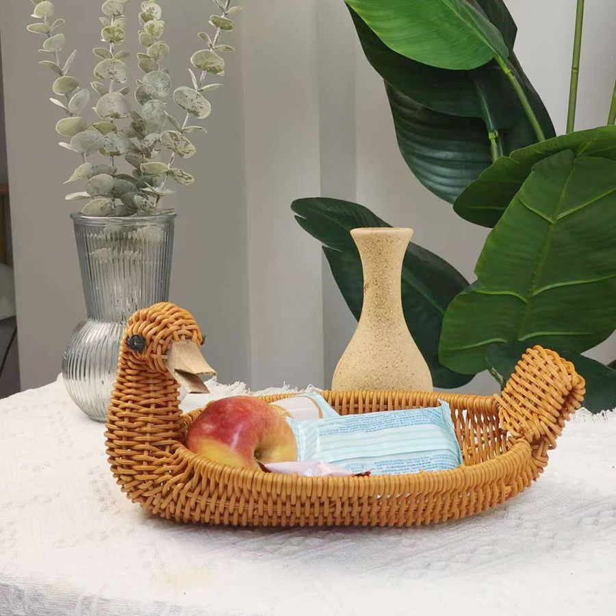 家用藤编果盘天鹅小鹿小鸭零食水果篮动物造型多用途收纳篮提篮
