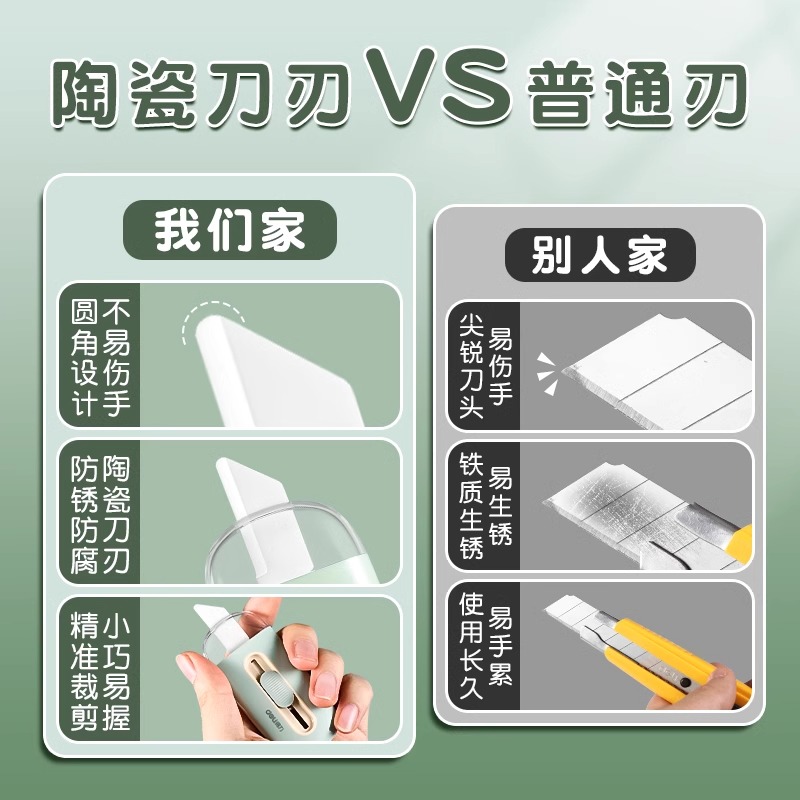 得力美工刀陶瓷刀创意迷你笔式裁纸刀儿童女孩手帐刀刻刀开箱神器防锈不伤手开箱刀壁纸刀切割刀拆快递小刀