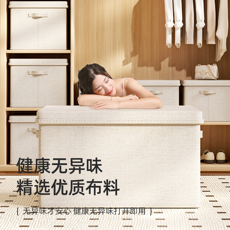 天山棉麻带盖收纳箱秋冬家用布艺衣柜衣服被子整理储物箱盒可折叠