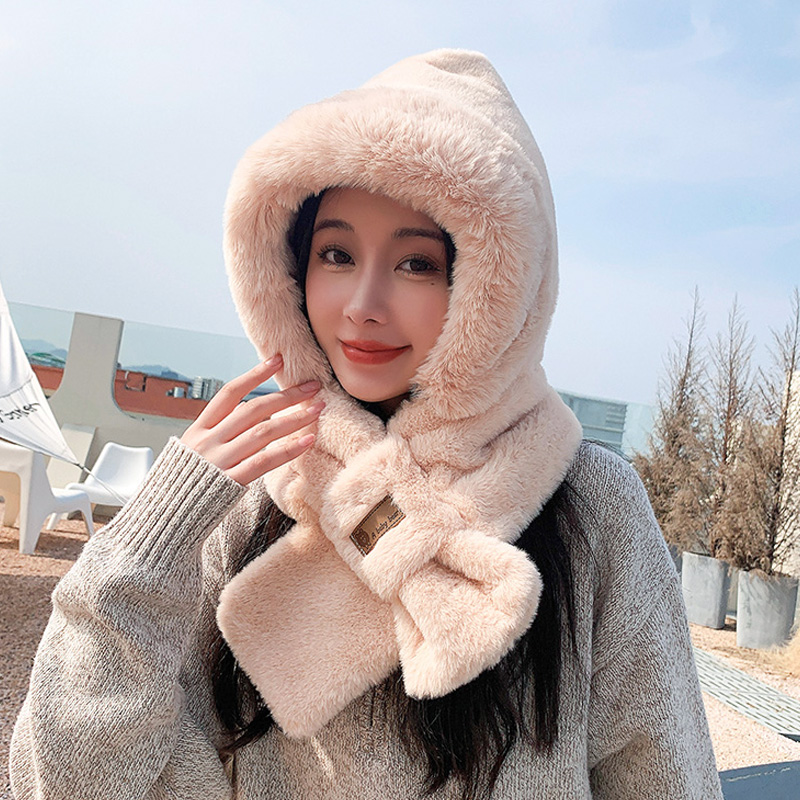 围巾帽子一体秋冬季保暖毛绒加厚仿兔毛可爱护耳帽子2025年新款女