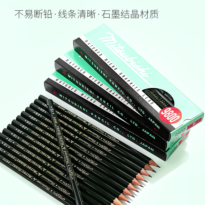 日本进口三菱素描铅笔9800绘画初学者速写绘图美术画画套装美术生专用工具三棱HB/2B/4B/6B/2H/10b/2比素描笔
